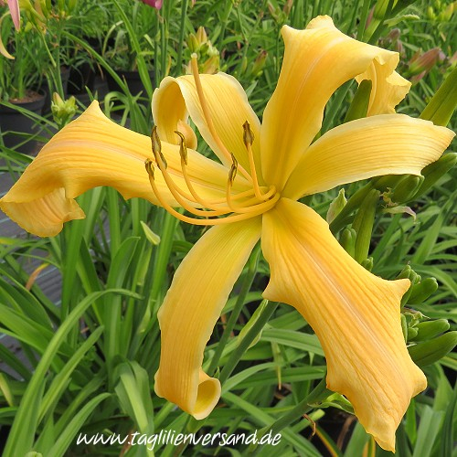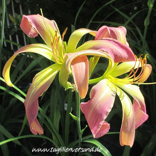 Mit Spider sind Taglilienblütenformen gemeint, bei denen das Verhältnis von Länge zu Breite der Blütenblätter mindestens 4 : 1 entspricht.